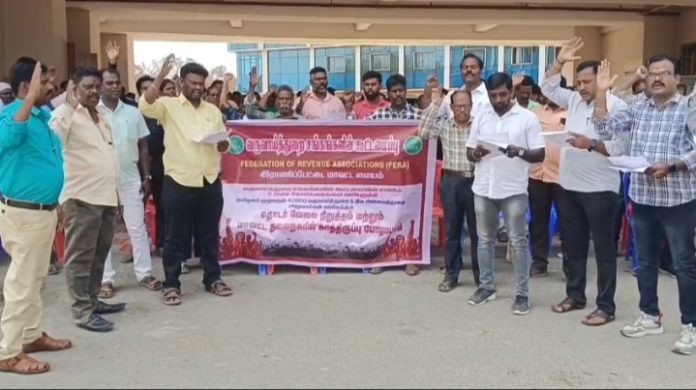 வருவாய்த்துறை சங்கங்களின் கூட்டமைப்பு சார்பில் மாவட்ட ஆட்சியர் அலுவலகத்தில் ஒன்பது அம்ச சுகாரிக்கையை வலியுறுத்தி தொடர் வேலை நிறுத்தம் மற்றும் காத்திருப்பு போராட்டம் நடைபெற்று வருகிறது