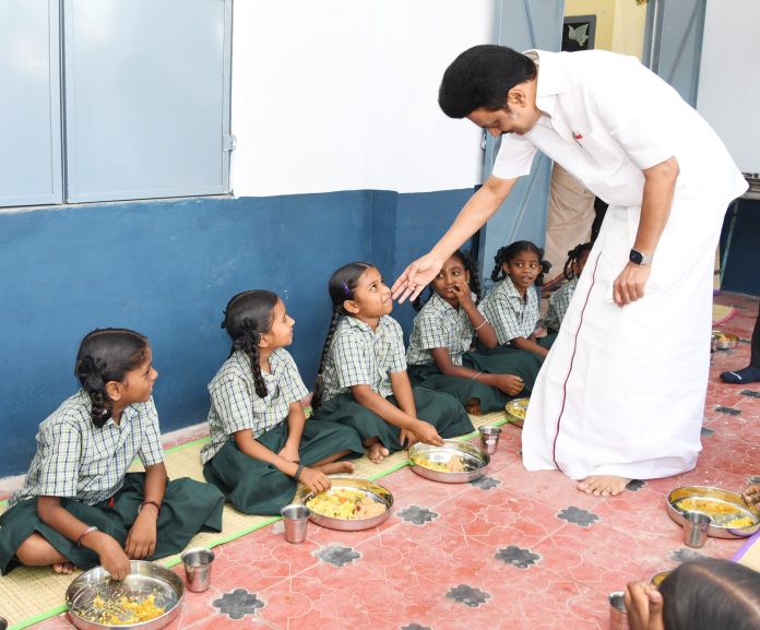 மற்ற மாநிலங்களுக்கு ஒரு முன்னுதாரணமாக அமைகிறது என்று முதல்வர் ஸ்டாலின் பெருமையுடன் கூறினார். இந்தத் திட்டத்தை இன்று அவர் தொடங்கி வைக்கிறார், இனிமேல், 20 லட்சத்து 59 ஆயிரம் மாணவர்கள் பட்டினியால் வாடுவார்கள். நீதிக்கட்சி முதல் நமது திராவிட மாதிரி அரசு வரை, பள்ளிக் குழந்தைகளுக்கு உணவளித்து, அவர்களின் பசியைப் போக்குகிறோம், அறிவுத் தாகத்திற்கு கல்வியை வழங்குகிறோம்.